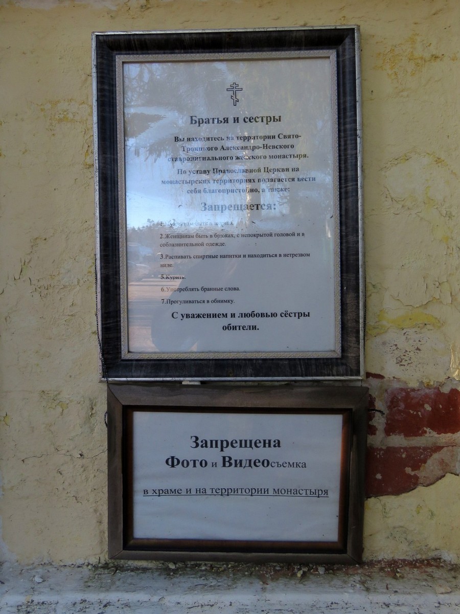а истекший период (2017-2025 гг.) в монастыре снесли находившуюся в середине территории не совсем благолепного вида постройку советского времени. Из других новшеств можно отметить новые правила для паломников . Когда сёстры сами пишут правила, это всегда интересно. Всегда найдёшь что-то забавное. Тут, например, нельзя "прогуливаться в обнимку". Сколько езжу по монастырям, такого ноу-хау в правилах нигде не встречал. Спасибо сёстрам, рассмешили.