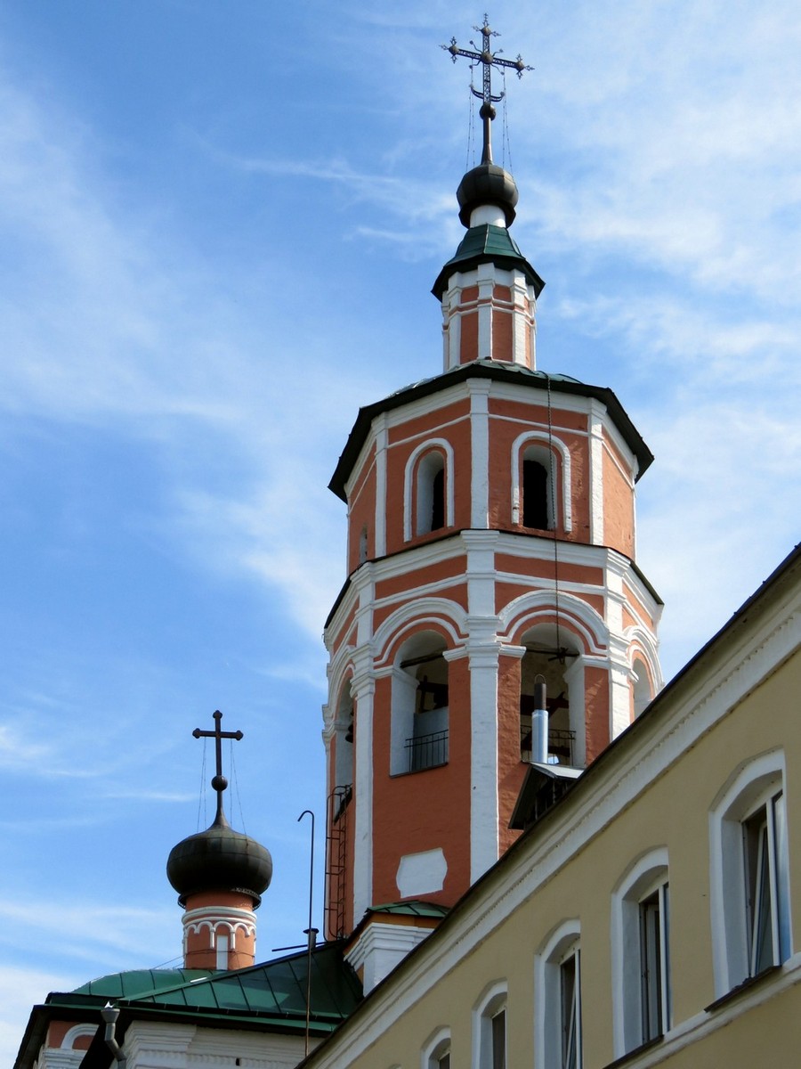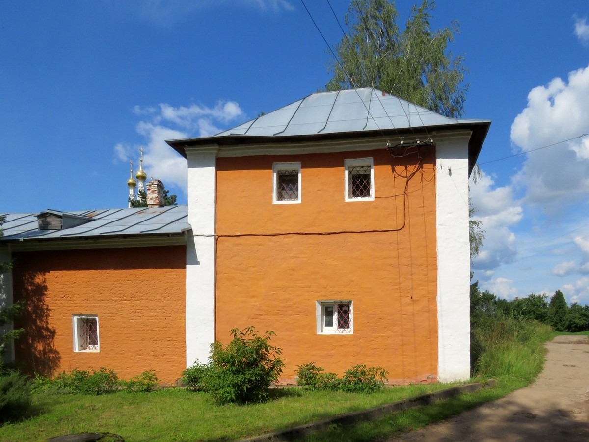 снован, по преданию, в 1536 г. иноком Герасимом Болдинским, основавшим также Болдинский монастырь под Дорогобужем. Надвратная церковь Вознесения (1656 г., по другим версиям позже) составляет единый комплекс с трапезной и колокольней. Вознесенская церковь в стиле барокко представляет собой вытянутый вверх четверик с трехчастной апсидой. Четверик украшен поясом ложных кокошников и междуэтажными карнизами. При реставрации восстановлены нарядные обрамления окон с фронтонами, арочный проезд, купол на круглом барабане.