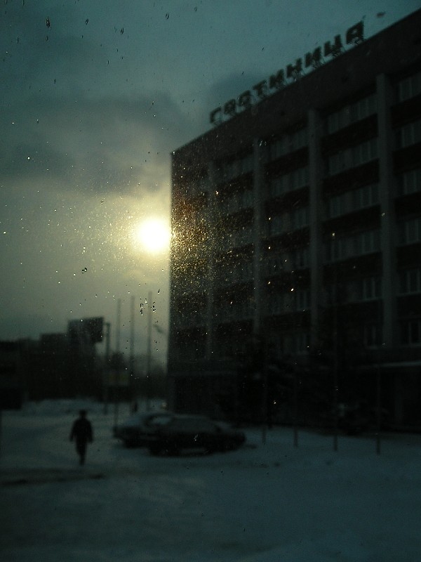 Из окна гостиницы открывается вид на рабочую окраину Рязани. Многочисленные трубы вселяют уверенность, что вставать утром придется по заводскому гудку.